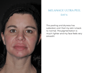 Please note: The full results from the Melanage Ultra Peel will be shown in 4-6 weeks. This post is only showing the client’s first week of recovery from the peel. We will update with the final before/after photo in 4-6 weeks!